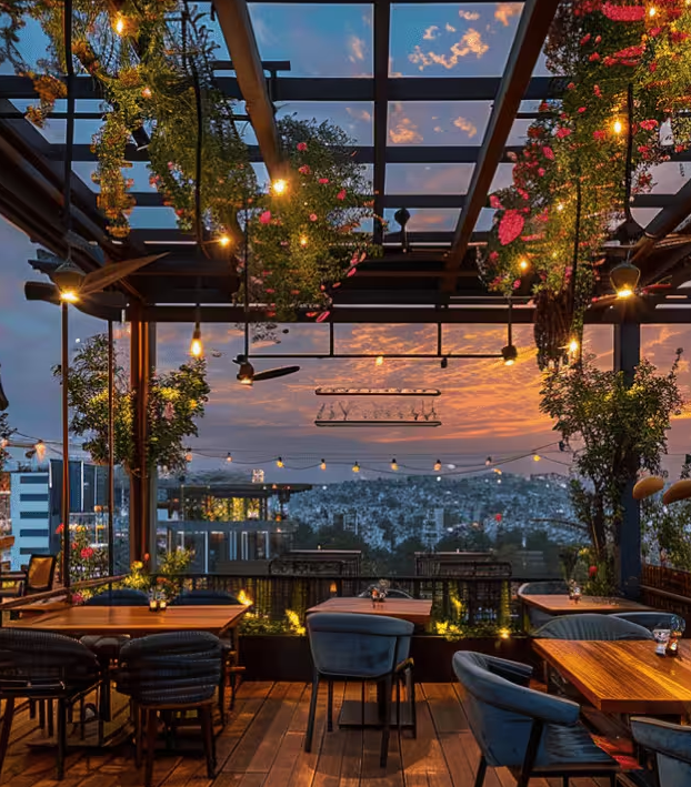 Rooftop sky lounge and viewing deck for temple vistas