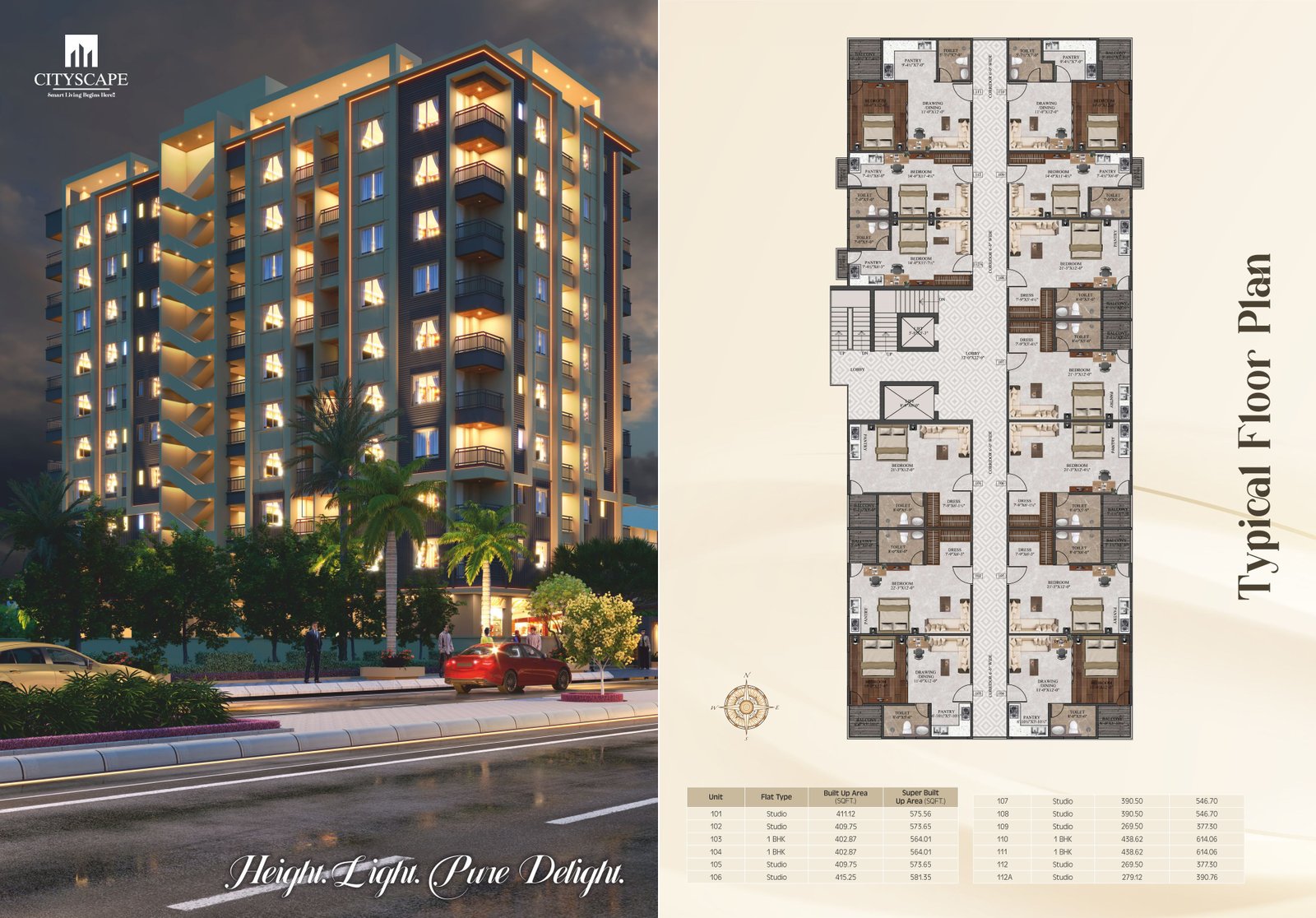 CityScape has been planned around the concept of studio apartments, which combine living, sleeping, and kitchen areas into a compact yet functional space. These units are designed primarily for single professionals, young couples, and short-term occupants working in the nearby corporate hub.