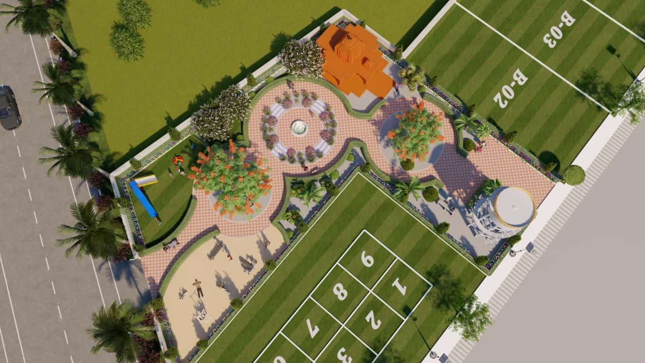 - Garden and Temple within the township for spiritual solace