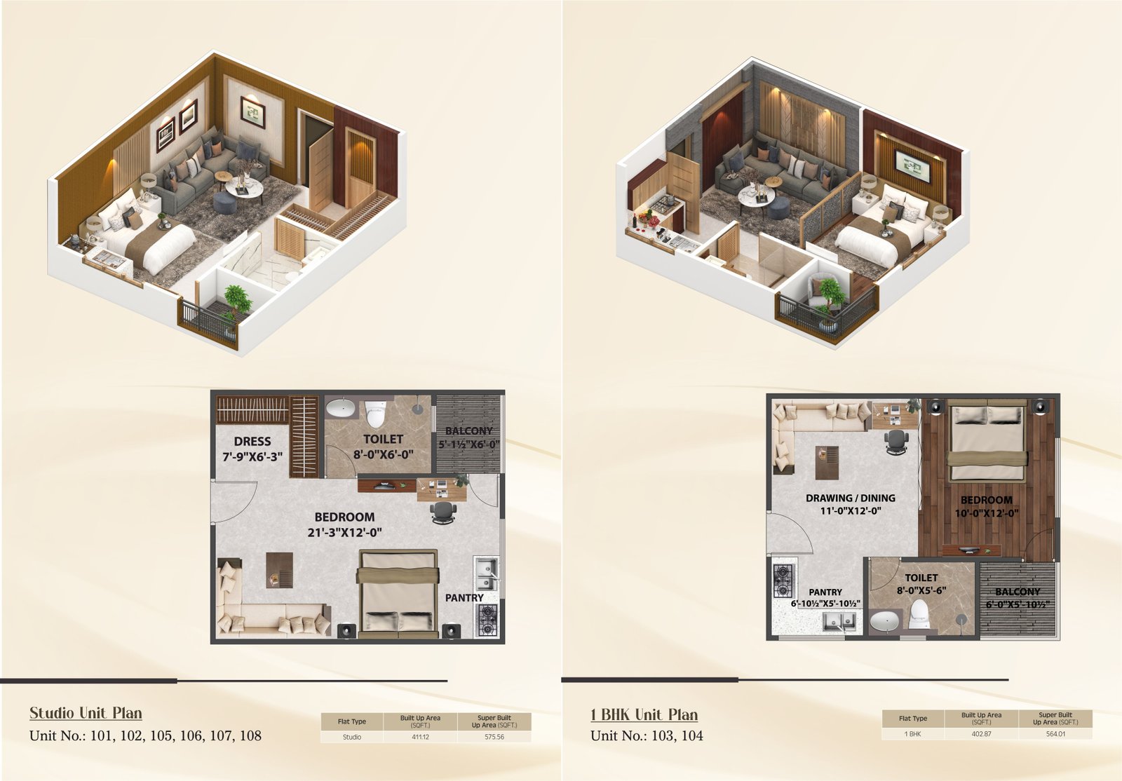 The project offers studio apartments and compact 1 RK units with sizes typically ranging between approximately 377 sq. ft. and 575 sq. ft.